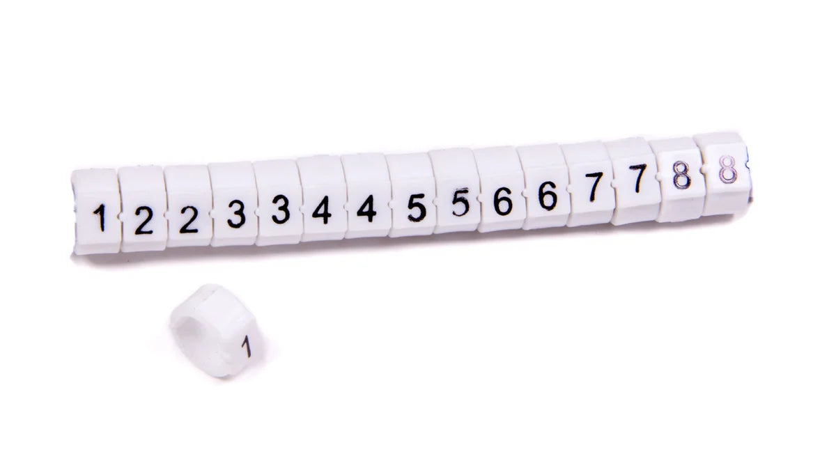 Spark Plug Wire Markers - Clip On Wire Markers - 7-8 mm Wires - White - Numbered 1-8 - Set of 16