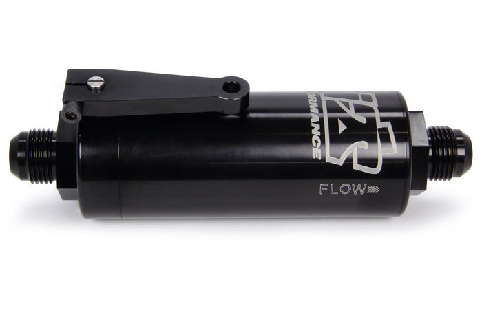 Fuel Filter - In-Line - 100 Micron - Stainless Element - 10 AN Male Inlet - 10 AN Male Outlet - Fuel Shutoff - Aluminum - Black Anodized - Each
