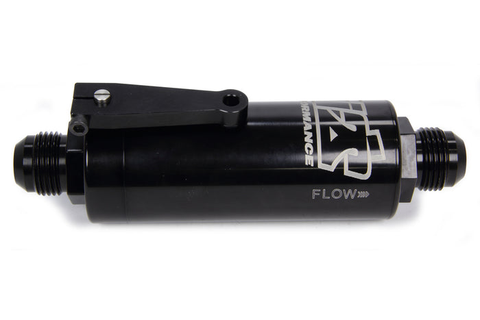 Fuel Filter - In-Line - 100 Micron - Stainless Element - 12 AN Male Inlet - 12 AN Male Outlet - Fuel Shutoff - Aluminum - Black Anodized - Each