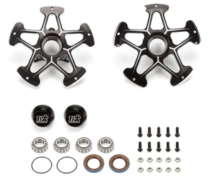 Wheel Hub - Front - 2 Direct Mount Hubs - Bearings / Dust Cap / Nuts / Races / Seals / Wheel Studs Included - Aluminum - Black Anodized - Pair