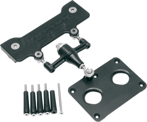CNC-machined from 6061 T-6 aluminum. Improve handling by triangulating motor and transmission in the chassis to eliminate frame wobble at high speeds and while cornering. Adjustable intermediate member with integrated patented Gooden-Tite polyurethane and aluminum isolator bushings. Open plate design with ventilating air scoops to assist in transmission cooling. Easy bolt-up installation. Includes stainless steel hardware and Heim joints. Made in the U.S.A.. Not for use with cross-under exhaust systems..