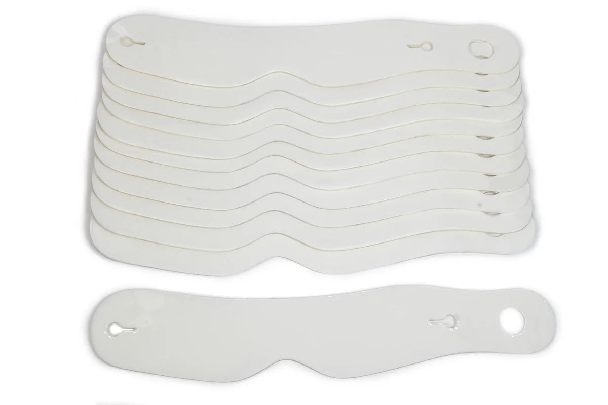 Helmet Shield Tear Off - 2 mm Thick - 11.5 in Center to Center - Nose Notch - Plastic - Clear - Simpson Helmets - Set of 200