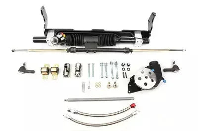 Rack and Pinion - Power - Tie Rods / Brackets / Power Steering Pump / Steering Shaft / Hardware Included - Aluminum - Black Powder Coat - GM B-Body 1958-64 - Kit