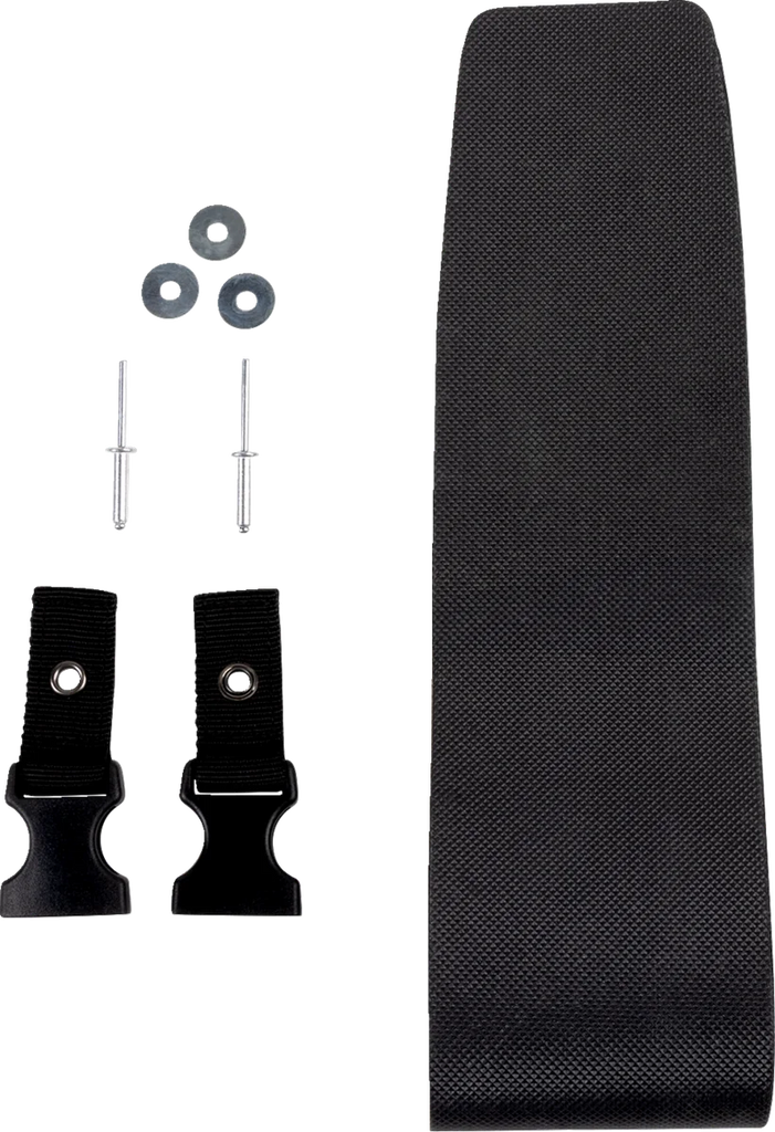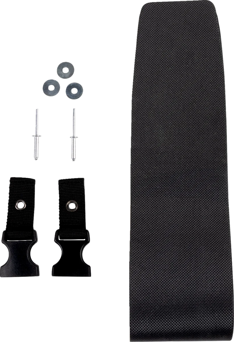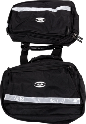 Large main compartments with rigid inner supports. Rugged rubber handles. Long pull tabs for easy access. Reflective back strip. Fastex quick-release buckles. Adjustable hook-and-loop system delivers a snug fit to most seats. Extra-long rear straps for a better fit on long-track snowmobiles.