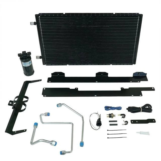 Air Conditioning Condenser and Drier - SureFit - Horizontal - 25.5 x 14 in - Aluminum - Black Paint - GM G-Body 1982-88 - Kit