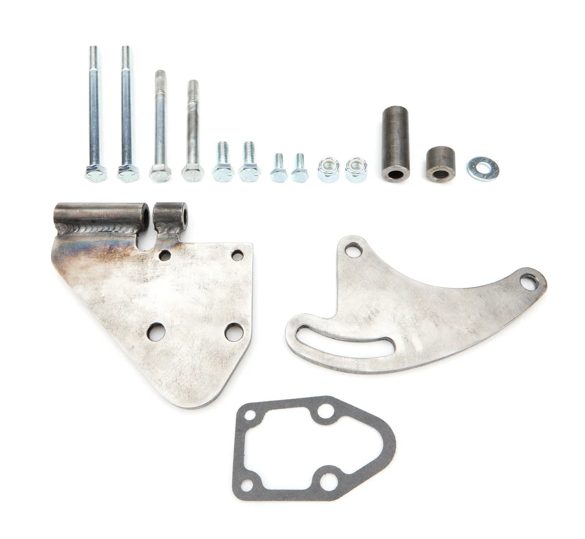 Air Conditioning Bracket - Block Mount - Passenger Side - Steel - Natural - Long Water Pump - Small Block Chevy - Kit