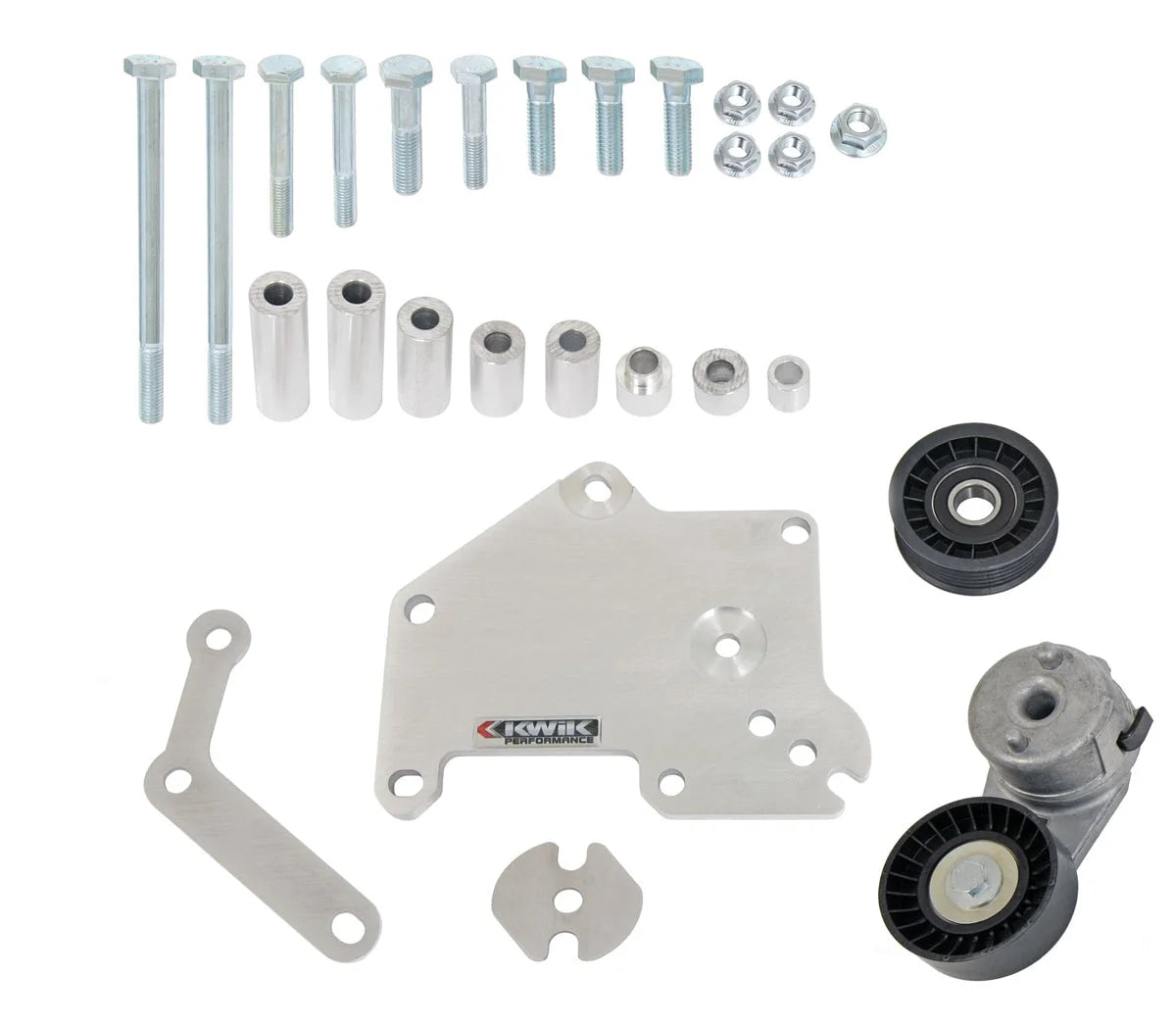 Air Conditioning Bracket - Passenger Side Mount - Long Water Pump - Steel - Natural - GM LS-Series - Kit