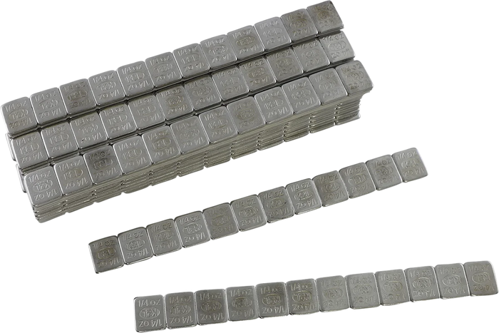 Pre-segmented stick-on steel wheel weights to match most stock and custom wheels.