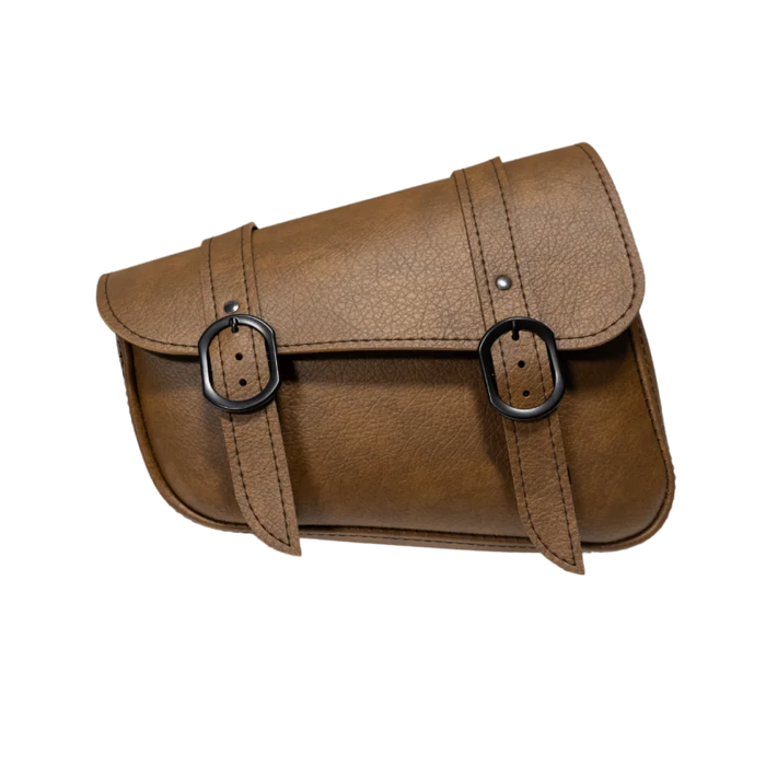 The Willie & Max Brass Monkey Swingarm Bag is a warm brown and brass monkey combo, compact left side solo bag made specifically for sportster-style bikes with a smaller profile!