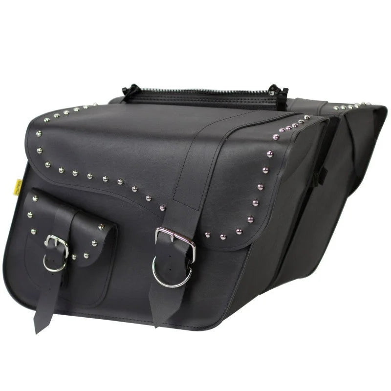 Willie & Max Universal Ranger Studded Large Slant Saddlebags (16 in L x 11 in H x 6.5 in W) - Black