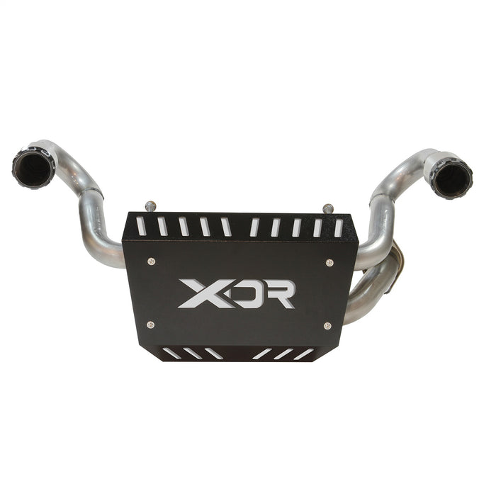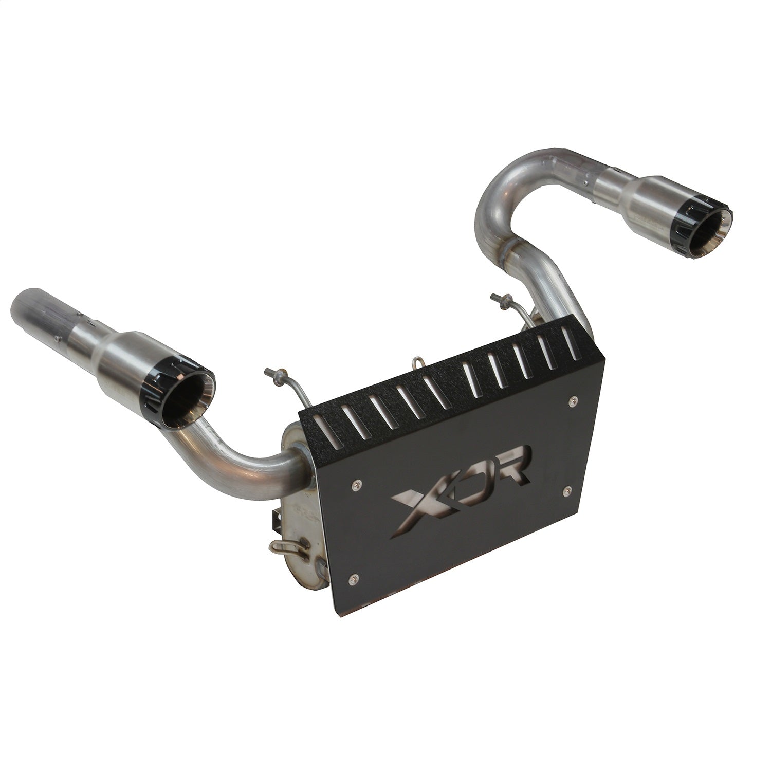 Description_MKT | This bolt-on XDR Competition exhaust system is for the 2015-2017 Polaris RZR XP 1000 and XP4 1000 with the naturally aspirated engine. The system connects at the factory flanged connection and is firmly held in place using the factory rubber mounts and springs. Features include 409S stainless steel construction, a 2.50-inch mandrel-bent inlet tube flowing into the "straight-through" cross-flow XDR Competition muffler providing a deep moderate to aggressive sound level. The dual 2.25-inch mandrel-bent tailpipes are tucked up high within the rear fenders and contain USFS qualified spark arrestors, and are finished off with a pair of 3.50-inch brushed 304s stainless steel tips with black anodized aluminum end caps. The system comes with a custom black powder coated heat shield sporting a laser-cut XDR logo in the shield showing everyone behind you why you're RZR sounds so good. Includes all necessary hardware and detailed instructions for a simple at home installation. Note: This system does not include a catalytic converter and therefore is not emissions compliant for on-road or trail use. For Competition use only. |