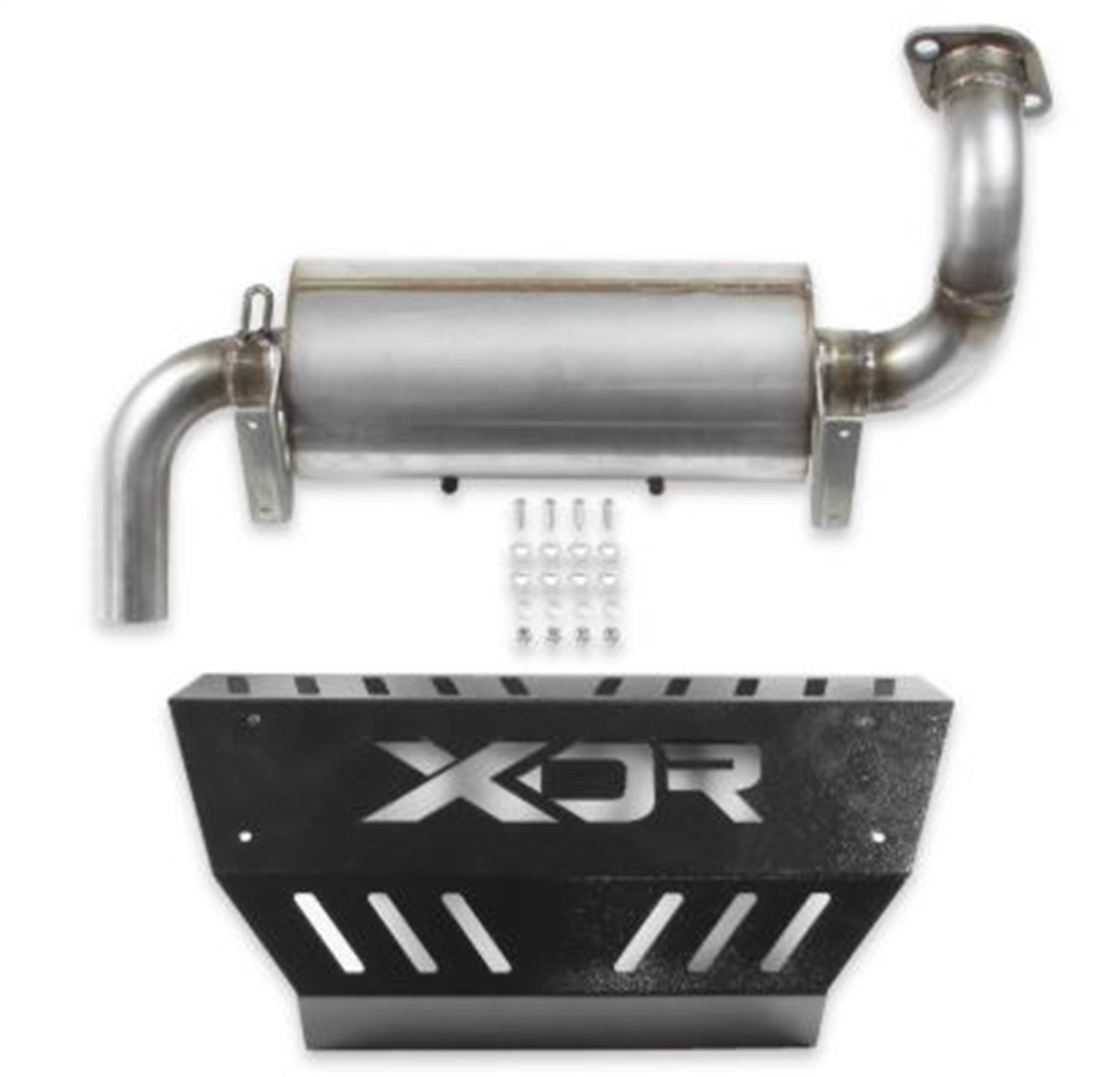 Description_MKT | The new XDR Competition single exhaust system for 2016-2024 Polaris General 1000EPS 2/4 Dr models, utilizes full 304S stainless steel construction, bolts up to the factory flange and is firmly held in place using the factory mounts and springs. Features include a large 2.25-inch mandrel-bent inlet pipe flowing into an XDR Competition muffler with a 2-inch mandrel-bent tailpipe to retain the OEM USFS qualified spark arrestor and exiting in the stock location. The cheap factory plastic heatshield has been replaced with a black powder-coated heatshield sporting a laser-cut XDR logo. The custom heat shield not only looks good but provides better airflow, heat dissipation and makes the statement that you're serious about performance. As a Competition XDR system, it will generally provide a moderate to aggressive sound level. Includes easy to follow installation instructions and all necessary hardware for a quick and simple at home installation. Note: This system does not include a catalytic converter and therefore is not emissions compliant for on-road or trail use. Competition use only. |
