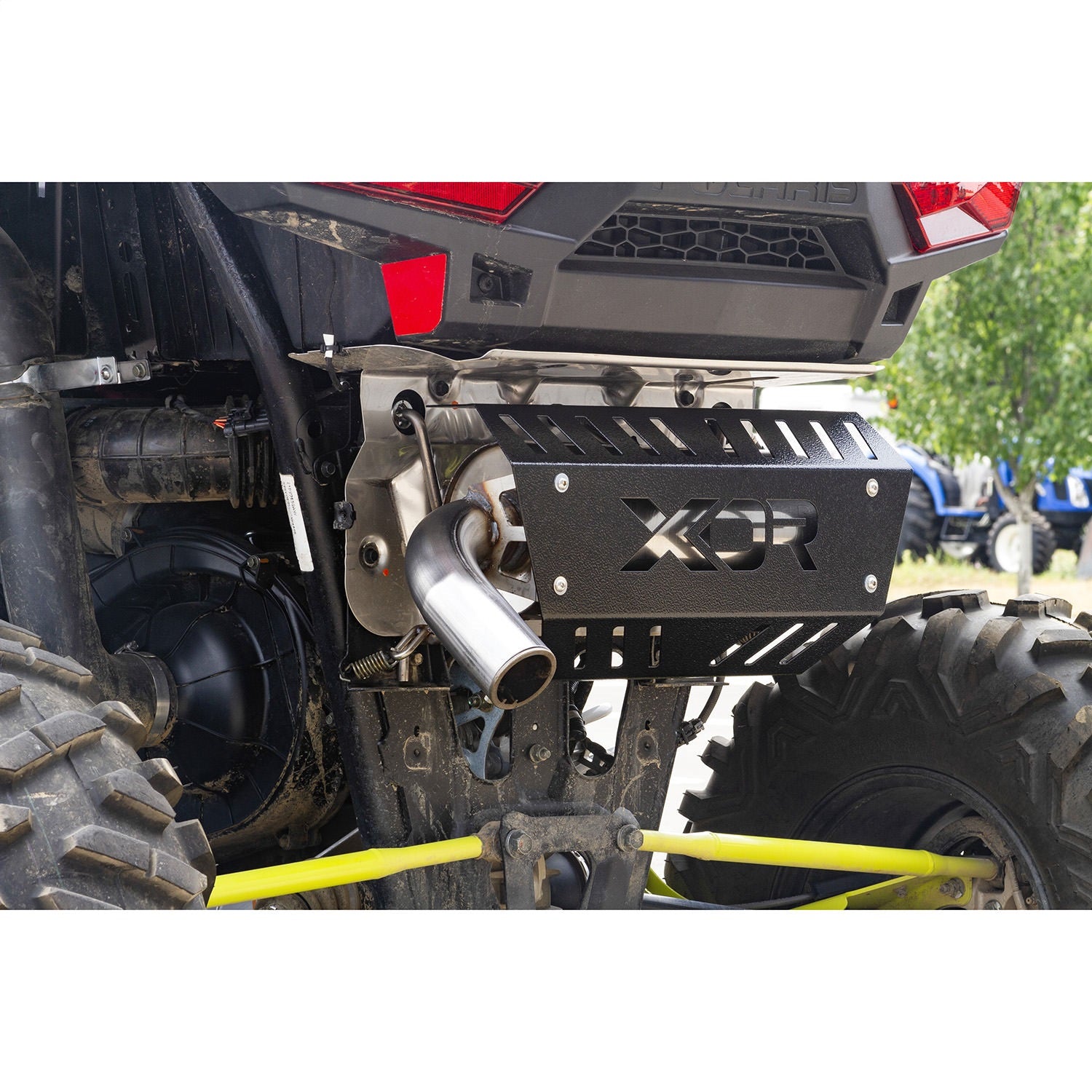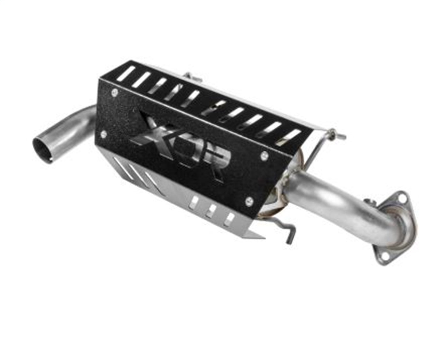 Description_MKT | The new XDR Off-Road® Competition single exhaust system for the 2018-2023 Polaris RZR RS1, RZR XP1000 and XP4 1000 utilizes full 304S stainless steel construction, slips on the factory flanged inlet connection and is firmly held in place using the factory rubber mounts and springs. Features include a large 2.50-inch mandrel-bent inlet pipe flowing into an XDR Off-Road Competition race muffler with a 2.50-inch mandrel-bent tailpipe exiting in the stock location. The tailpipe is designed to re-use the OEM USFS qualified spark arrestor allowing you to meet stock class race rules when necessary. The cheap factory plastic heatshield is replaced with a black powder-coated steel heatshield sporting a laser-cut XDR logo that not only looks good, provides better airflow and heat dissipation but also makes the statement that you're serious about performance. As an XDR Off-Road Competition system, it will generally provide a moderate to aggressive sound level. Includes easy to follow installation instructions and all necessary hardware for a quick and simple at home installation. Note: This system does not include a catalytic converter and therefore is not emissions compliant for on-road or trail use. Competition use only. |